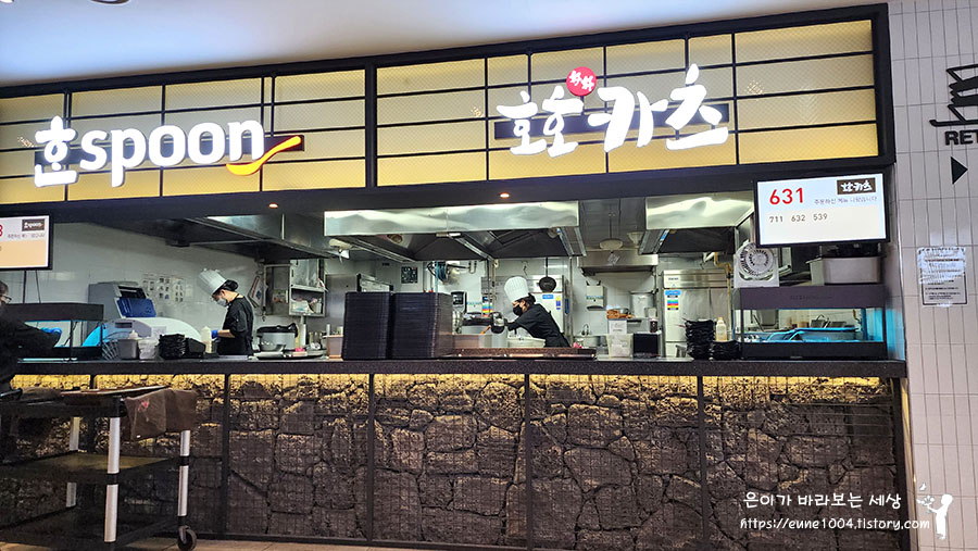 주문을 하고 호호카츠앞에 자리를 잡습니다.