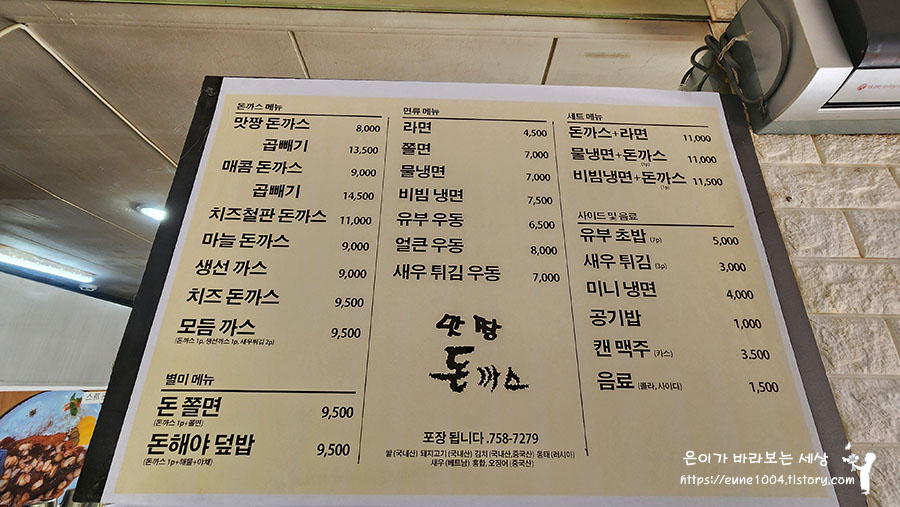 맛짱 돈까스 메뉴판입니다.