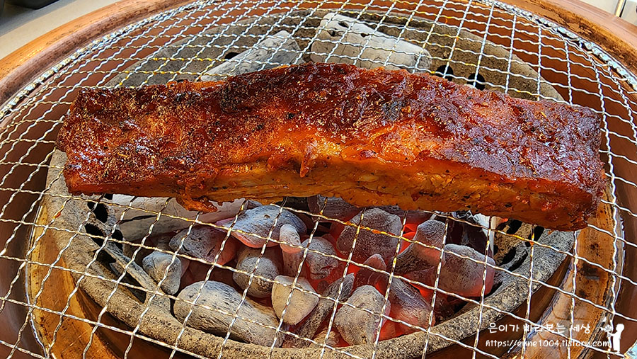 숯불을 넣었는지 알고 고기를 올렸어요 ㅋㅋㅋ