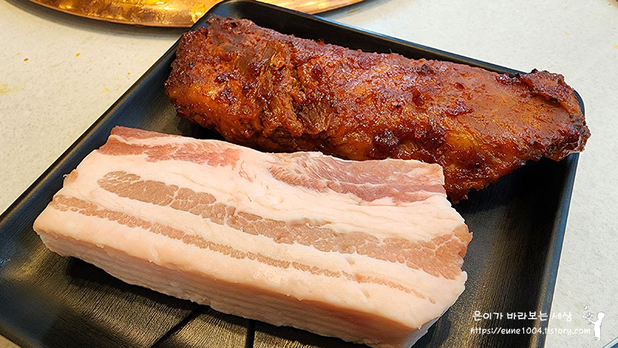 그래서 그런지 삼겹살보단 더 부드러웠어요
