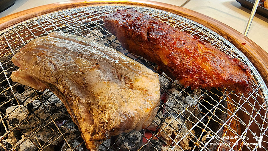 두꺼워서 그런지 숯불에 구워 먹기 딱 좋았어요