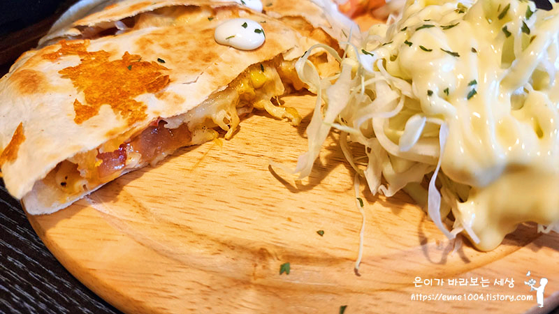 치즈가 듬뿍 들어간 퀘사디에 너무 맛있어요