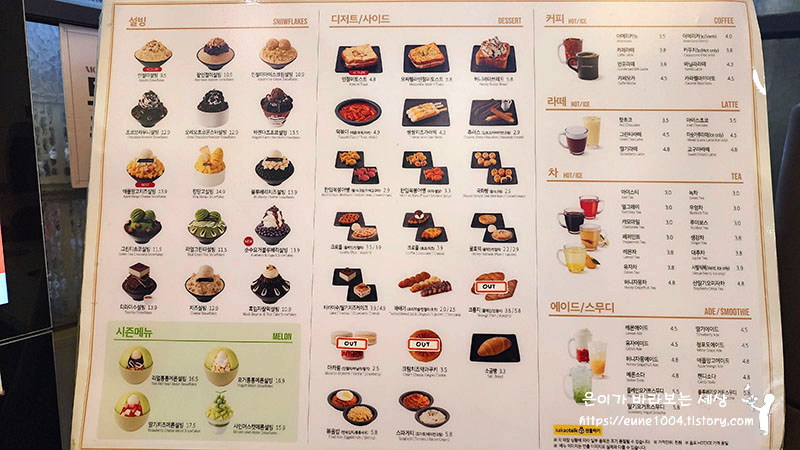 오른쪽 옆에 메뉴판도 있습니다