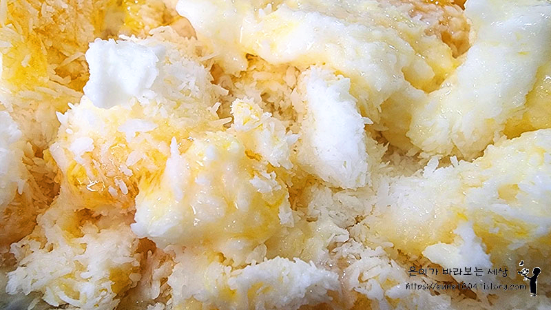 인절미에 팥 올려져 있는 걸 먹으려다...