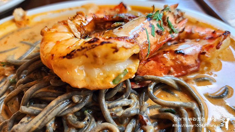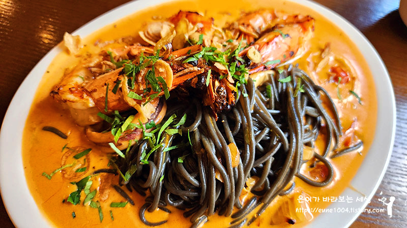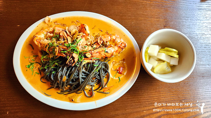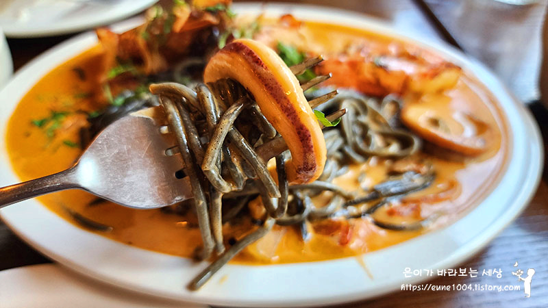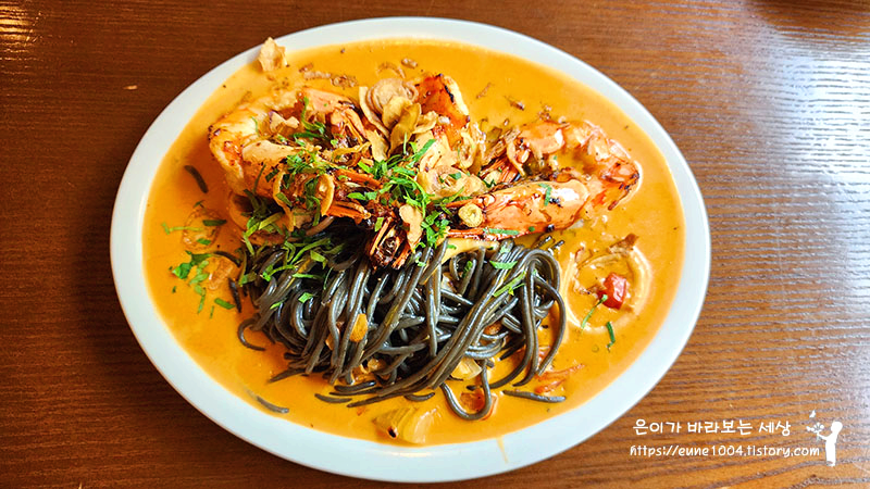 면은 미역국수 같은 색깔? 오징어먹물로 반죽하셨겠죠 ㅋ