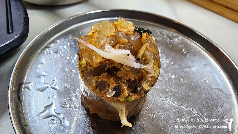 수제순대에 새우젓을 올려 먹어봅니다.