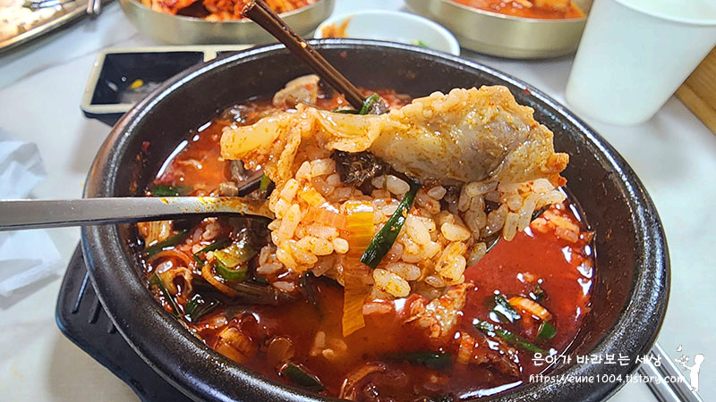 건더기 조금 먹다가 밥 말았어요