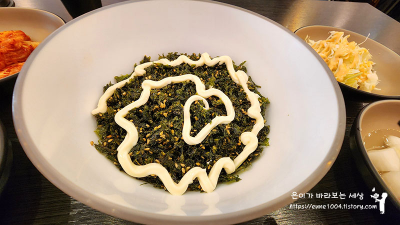 깨와 갈릭후레이크가 잔뜩 뿌려져 있어요