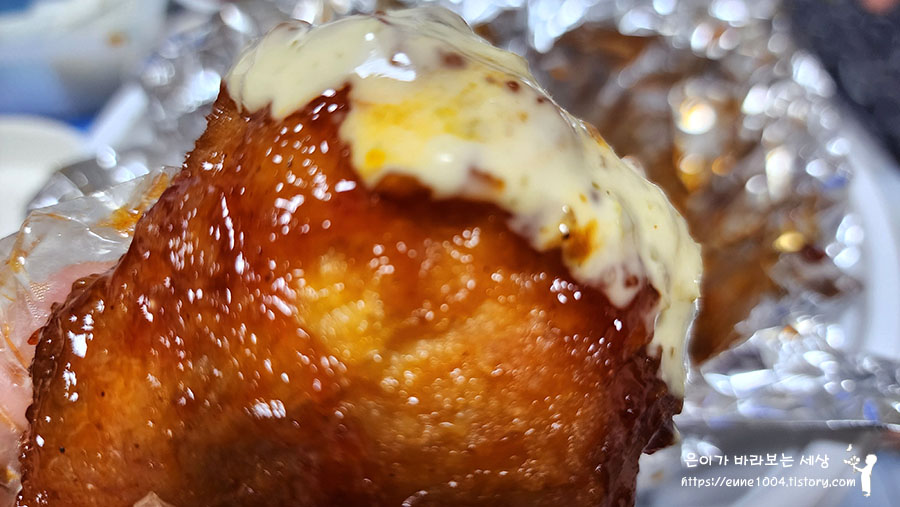 먹다 질리면 청양마요 소스를 발라서 한입~!