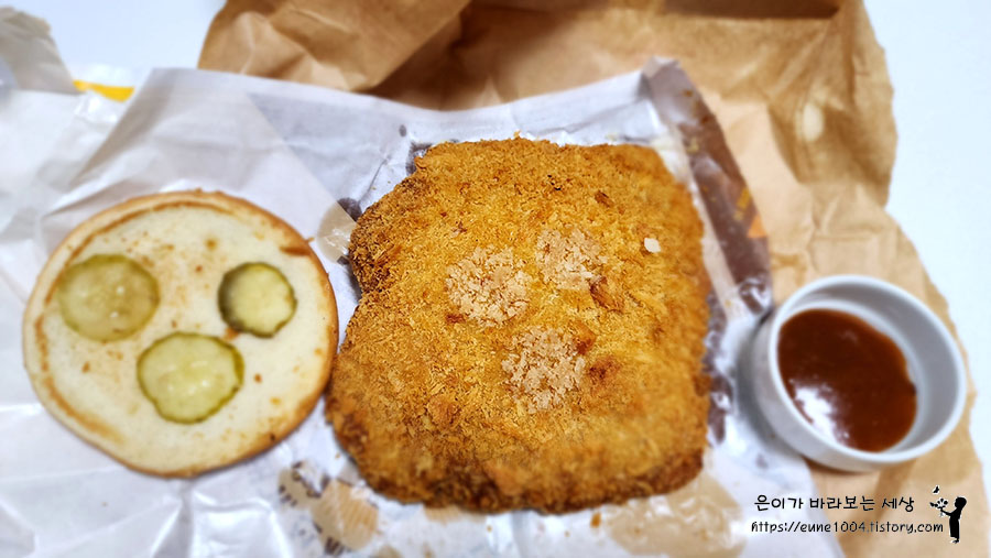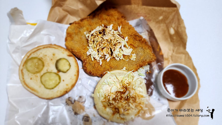 돈까스 버거를 즐겨보아라.